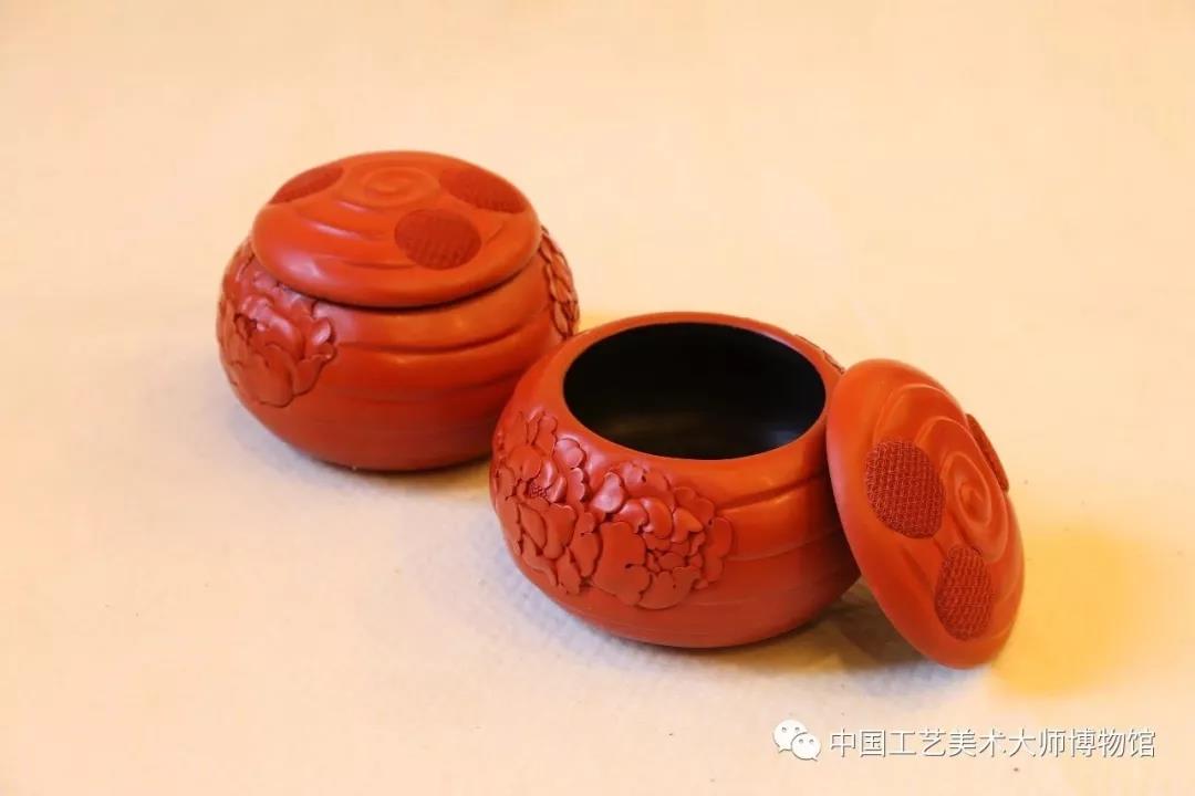馆藏作品:文乾刚《剔红牡丹纹围棋盒》15×12cm