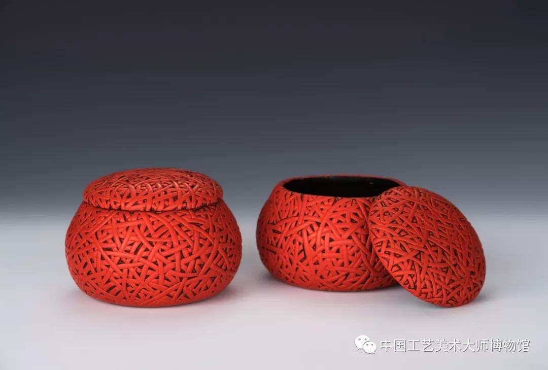 馆藏作品:文乾刚《剔红鸟巢纹围棋盒》15×13cm