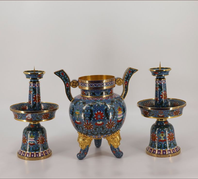 一炉两觚二烛台,五供陈列见匠心。提到景泰蓝,多数人想到的是皇家气派;提到“五供”,又会联想到传统祭祀。而当这两者碰撞,一起来感受着工艺的魅力和背后所表达的文化内涵。
