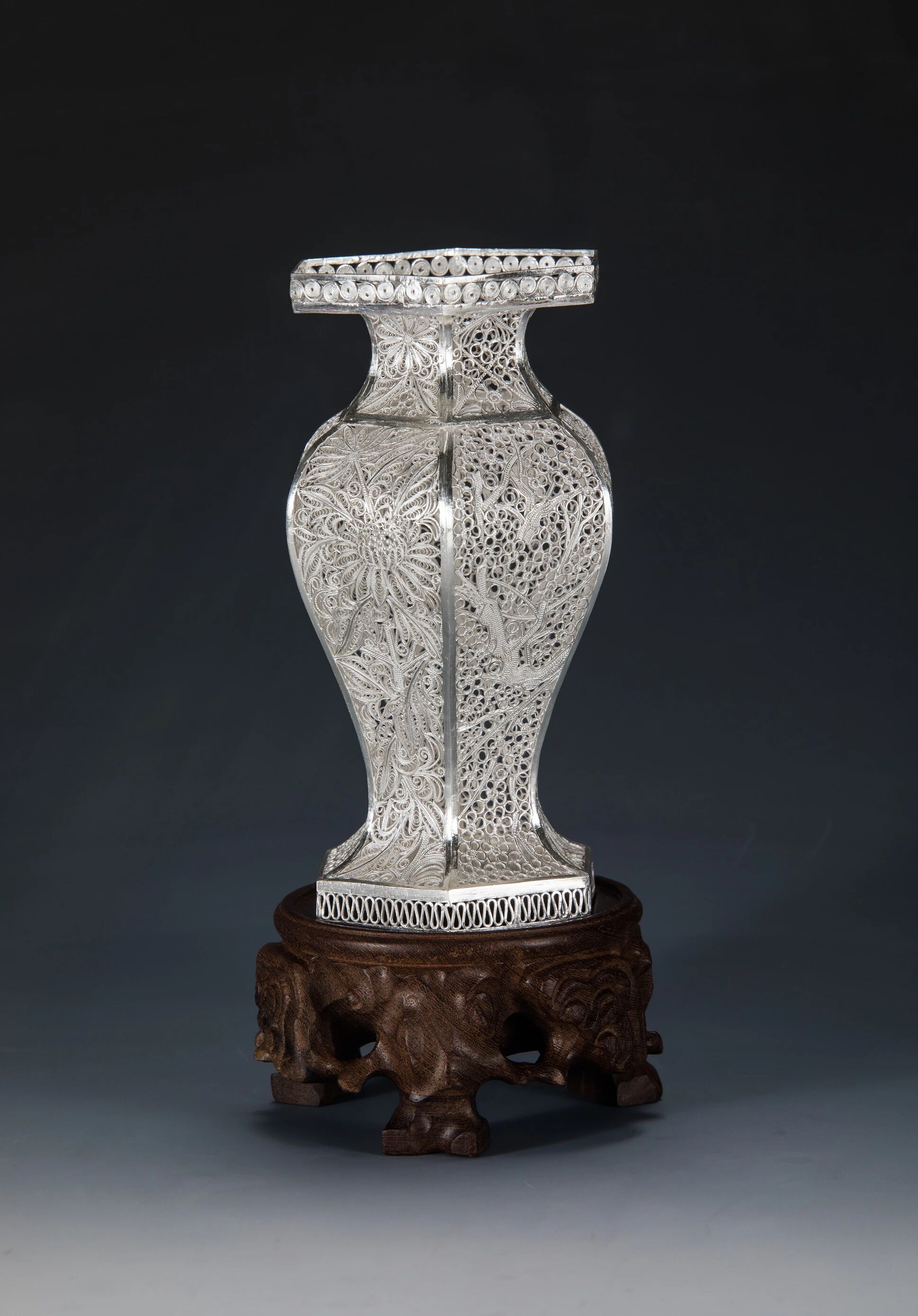 馆藏作品:《六棱菊花瓶》作者:倪成玉