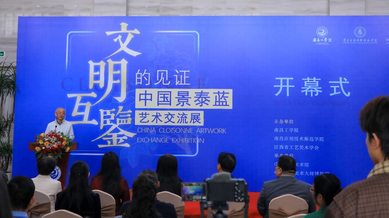 开幕式上,来自文化、艺术、教育等领域的嘉宾齐聚一堂。江西省轻工业联合会理事长郑正春、南昌工学院理事长王斌、南昌应用技术师范学院党委书记、督导专员胡晓娥、校长陶也青、江西省美术家协会名誉主席蔡超等30余位领导与专家学者共同出席,见证这一文化盛事。南昌工学院理事长王斌宣布“文明互鉴的见证——中国景泰蓝艺术交流展”正式开幕。